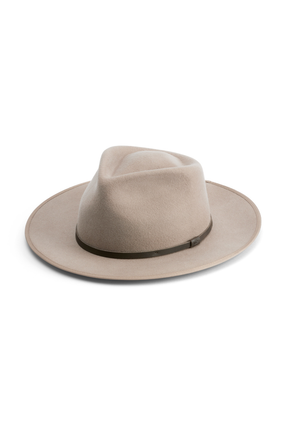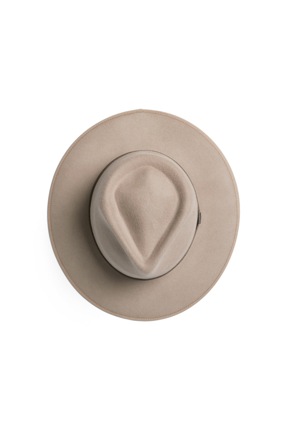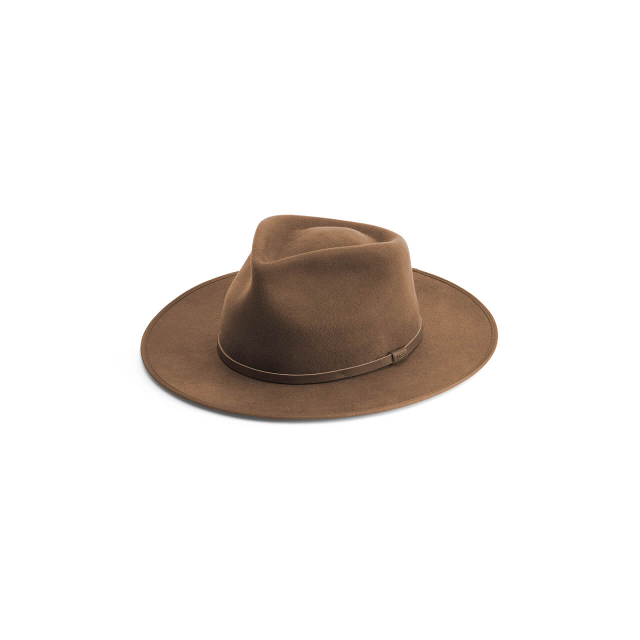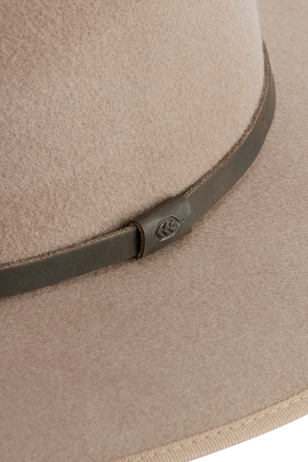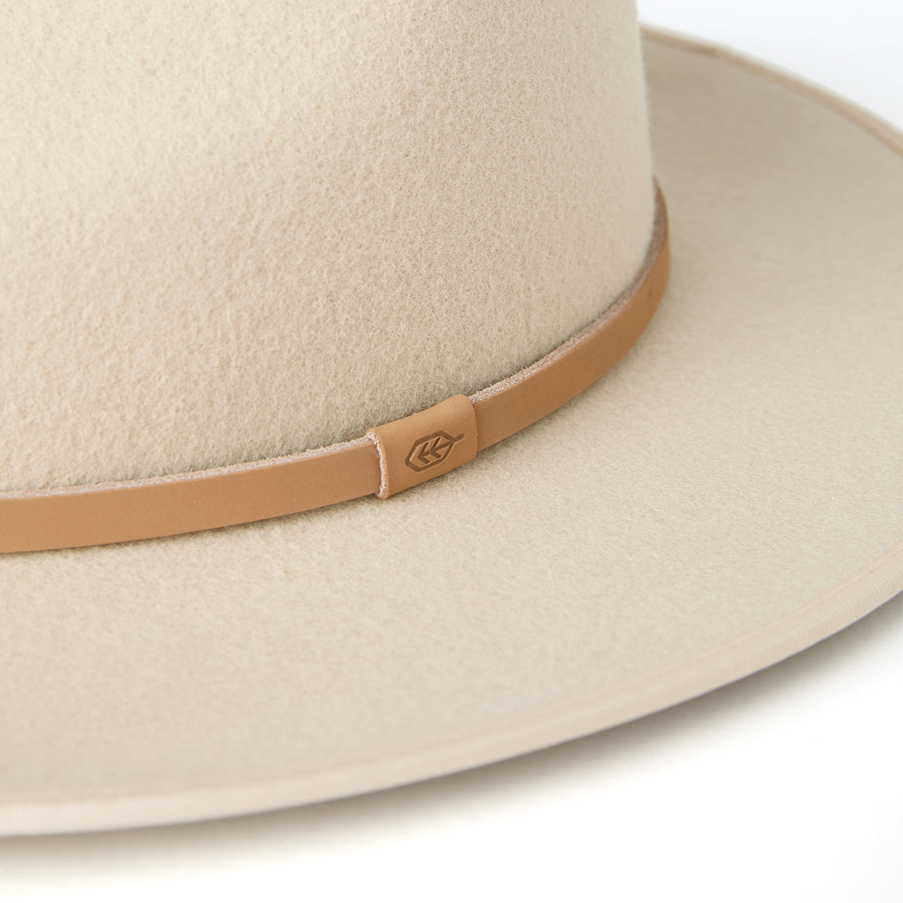 The Will & Bear Calloway Hat is made from 100% Australian wool, it features a structured design with a crisp teardrop crown and a stiff 7cm brim finished with a grosgrain bound edge. A soft matte leather band adds a simple touch, making it a classic piece for any adventure.