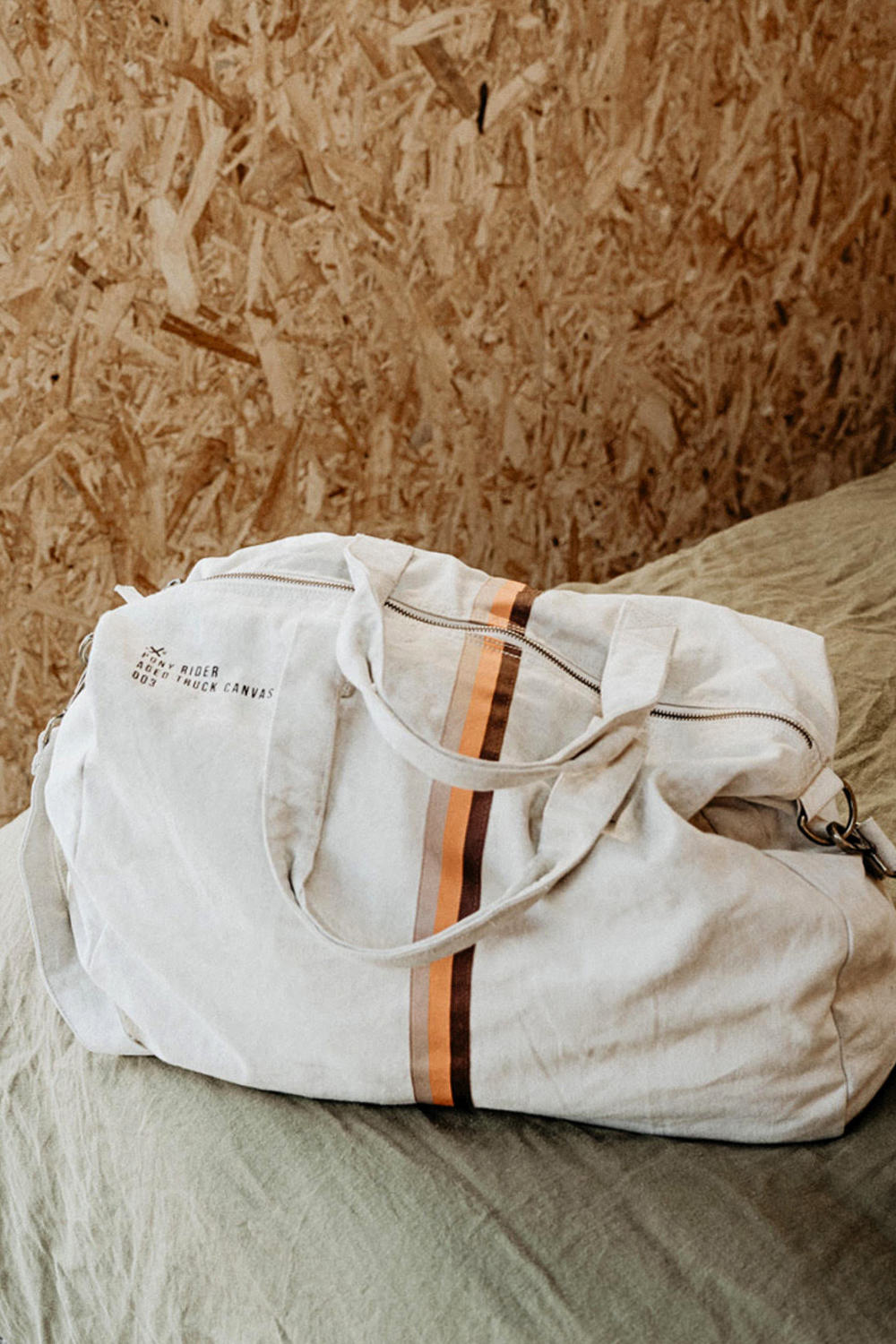 Crafted from upcycled truck canvas, each bag is slightly different, with marks, stitching, and character that tell their own story. Sturdy, practical, and designed to last, it's the kind of bag you’ll always find a reason to use.