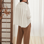 The Achille Shirt features a classic front and a wide pleated back that moves beautifully as you wear it. Long sleeves and a relaxed fit make it easy to dress up or down.