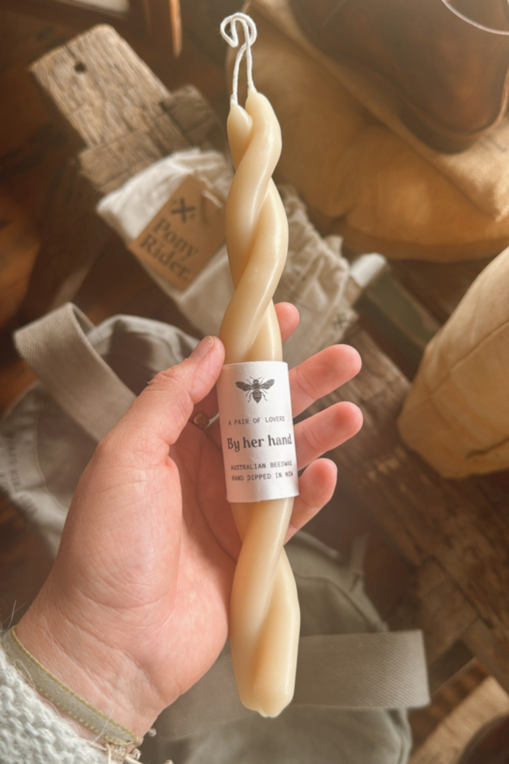 By Her Hand ‘Lovers’ Beeswax Candle – Twisted Pair
