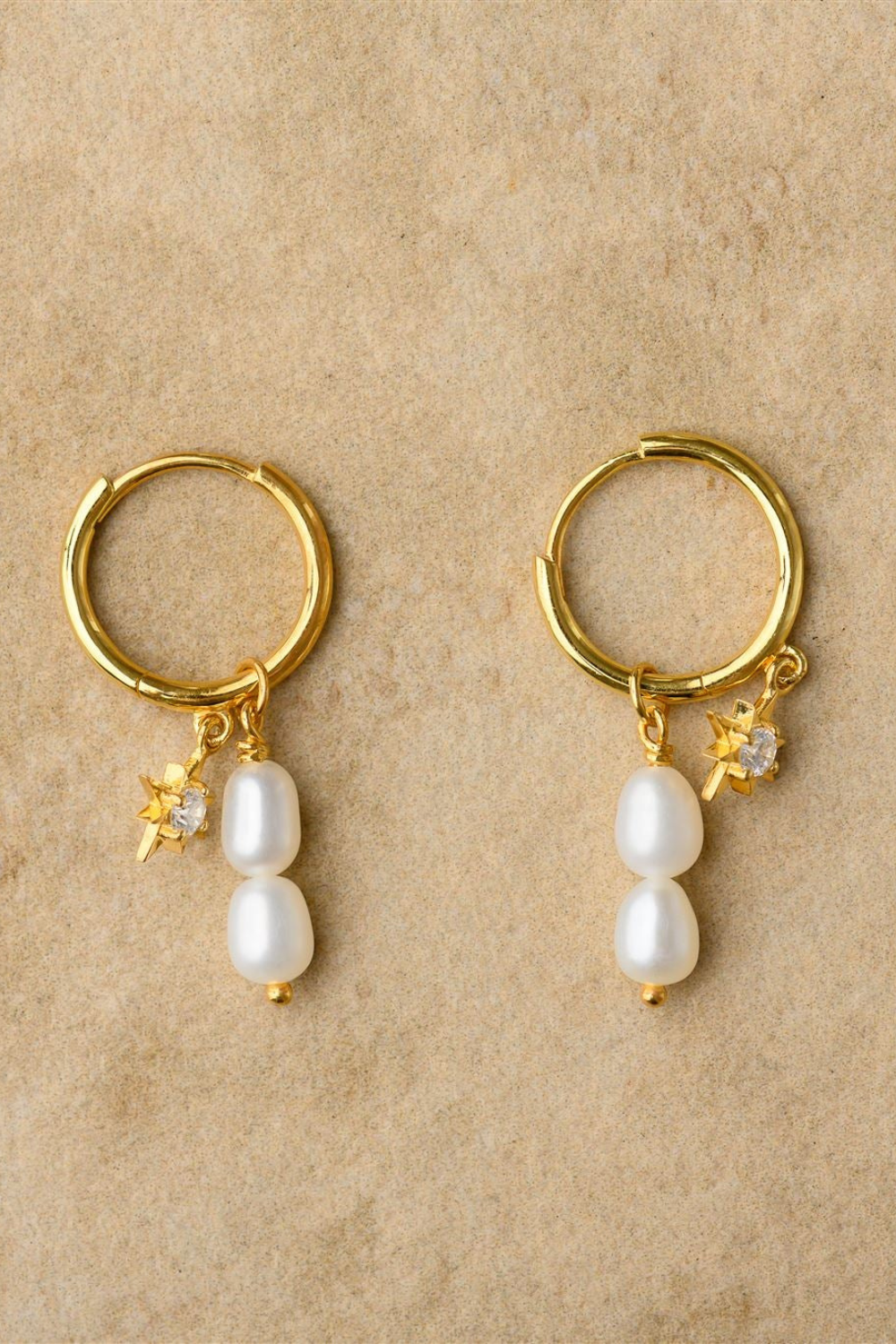 The Ayla Earrings pair a freshwater pearl with a tiny star charm, set on a gold vermeil huggie. A playful yet elegant design, hypoallergenic and made to wear every day.