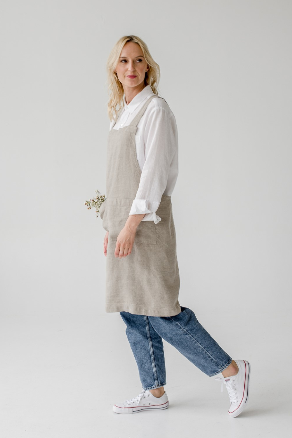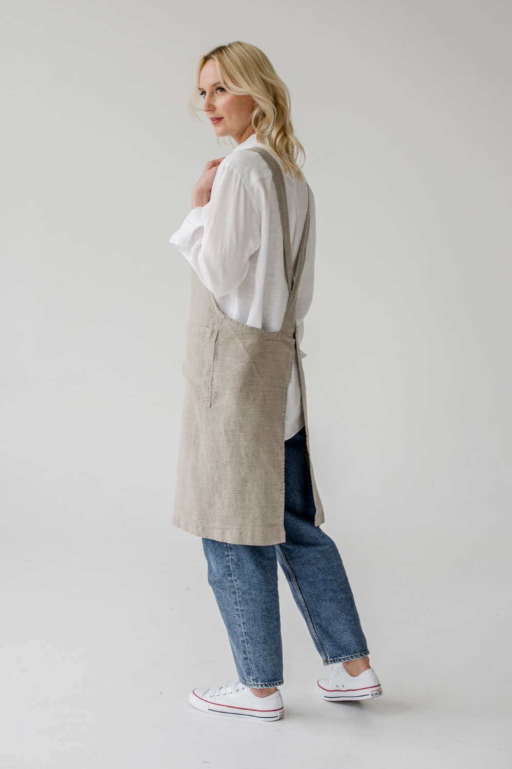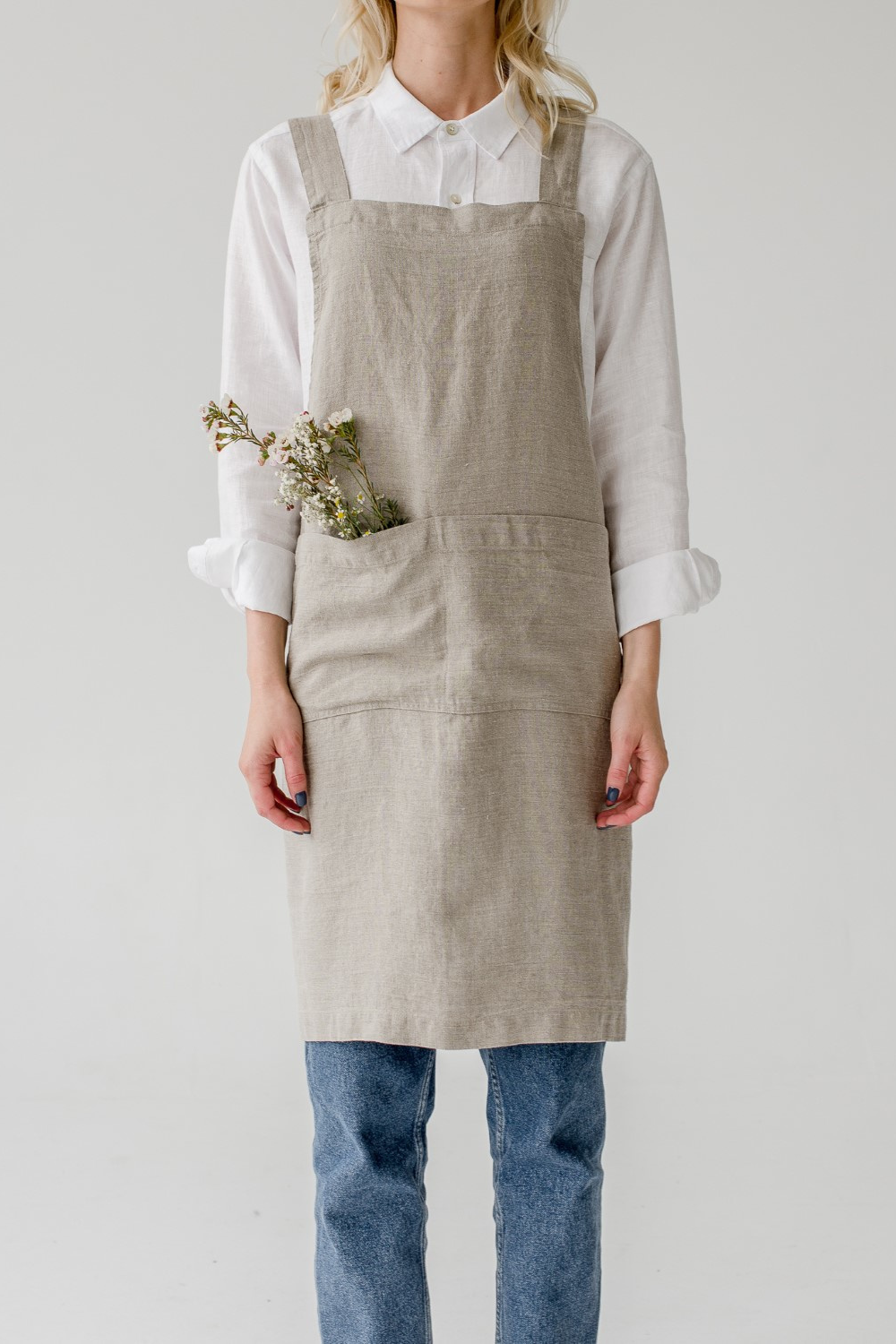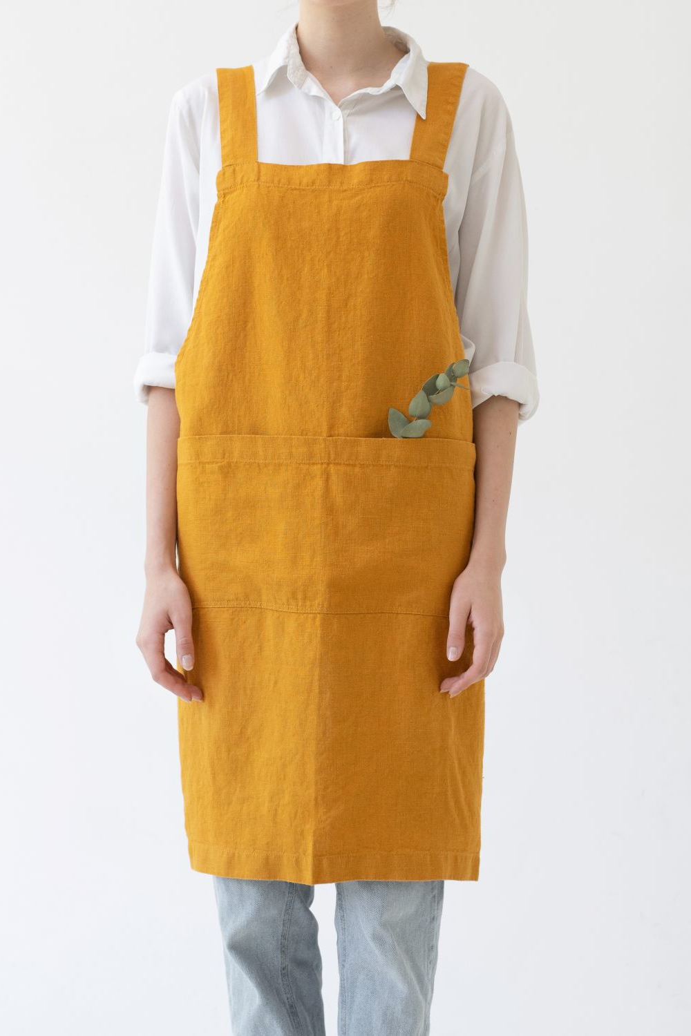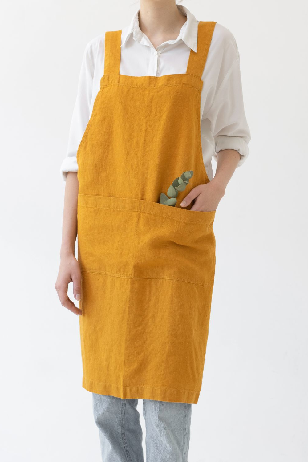 This lovely linen crossback apron from Linen Tales is made for easy, comfortable wear. With no ties to fuss with and two front pockets, it’s perfect for keeping your essentials handy while you cook.