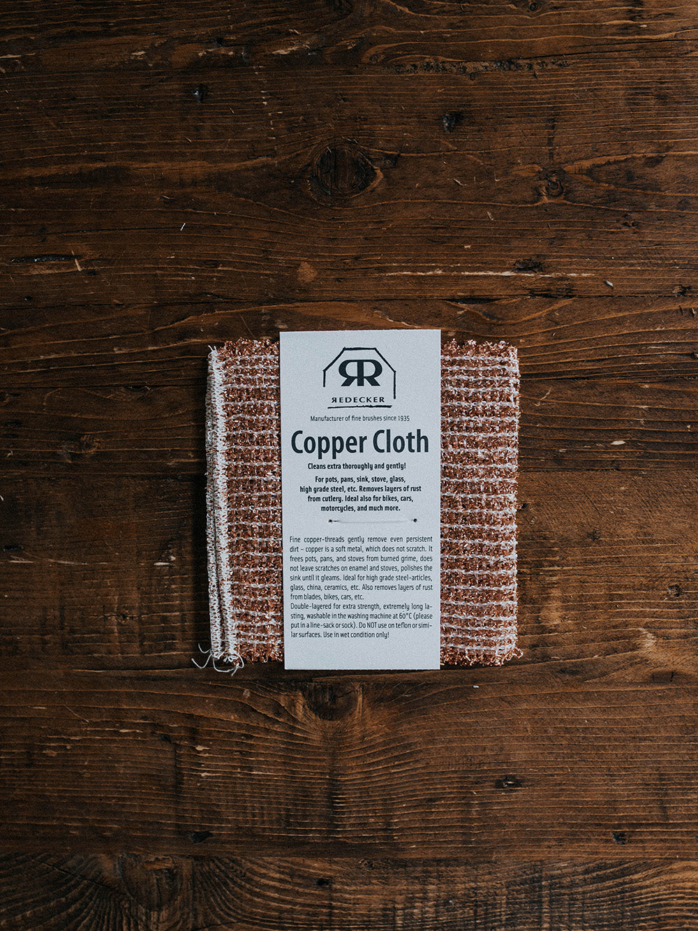 Fine copper threads gently remove persistent burned on cooking grime. This set of two handy cloths has been designed so as to not leave scratches on enamel and stoves. The copper fibre also has the added benefit of polishing sinks, pans, ovens, ceramic cook tops, glass and stainless steel basins as it cleans. Do not use on teflon or non-stick surfaces. 100% recyclable.