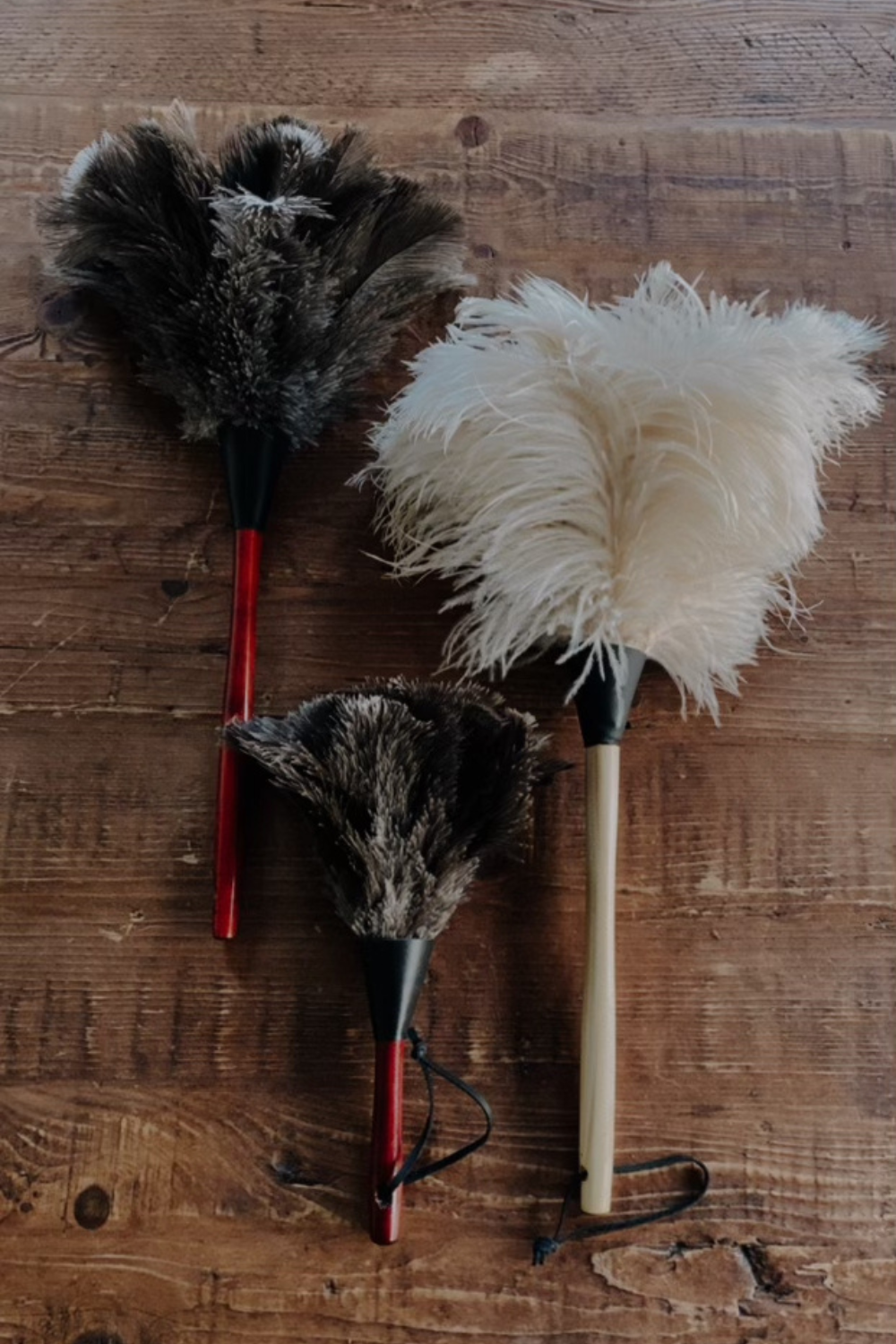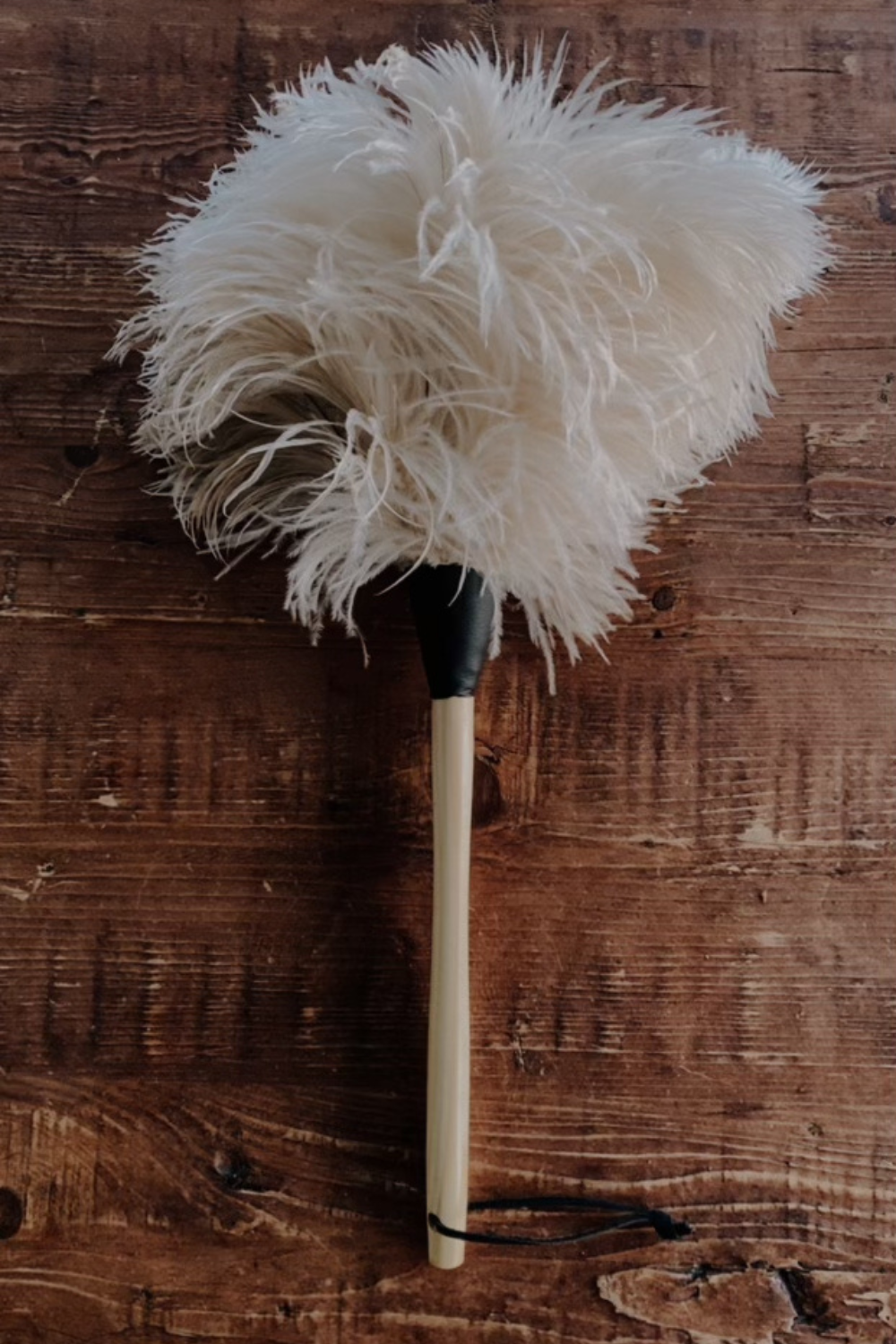 Soft, light, and highly effective - this beautiful feather duster makes cleaning feel like less of a chore. Handmade with dark ostrich feathers and a sturdy wooden handle, it’s ideal for delicate surfaces and small treasures. A gentle shake and it’s ready to go again.