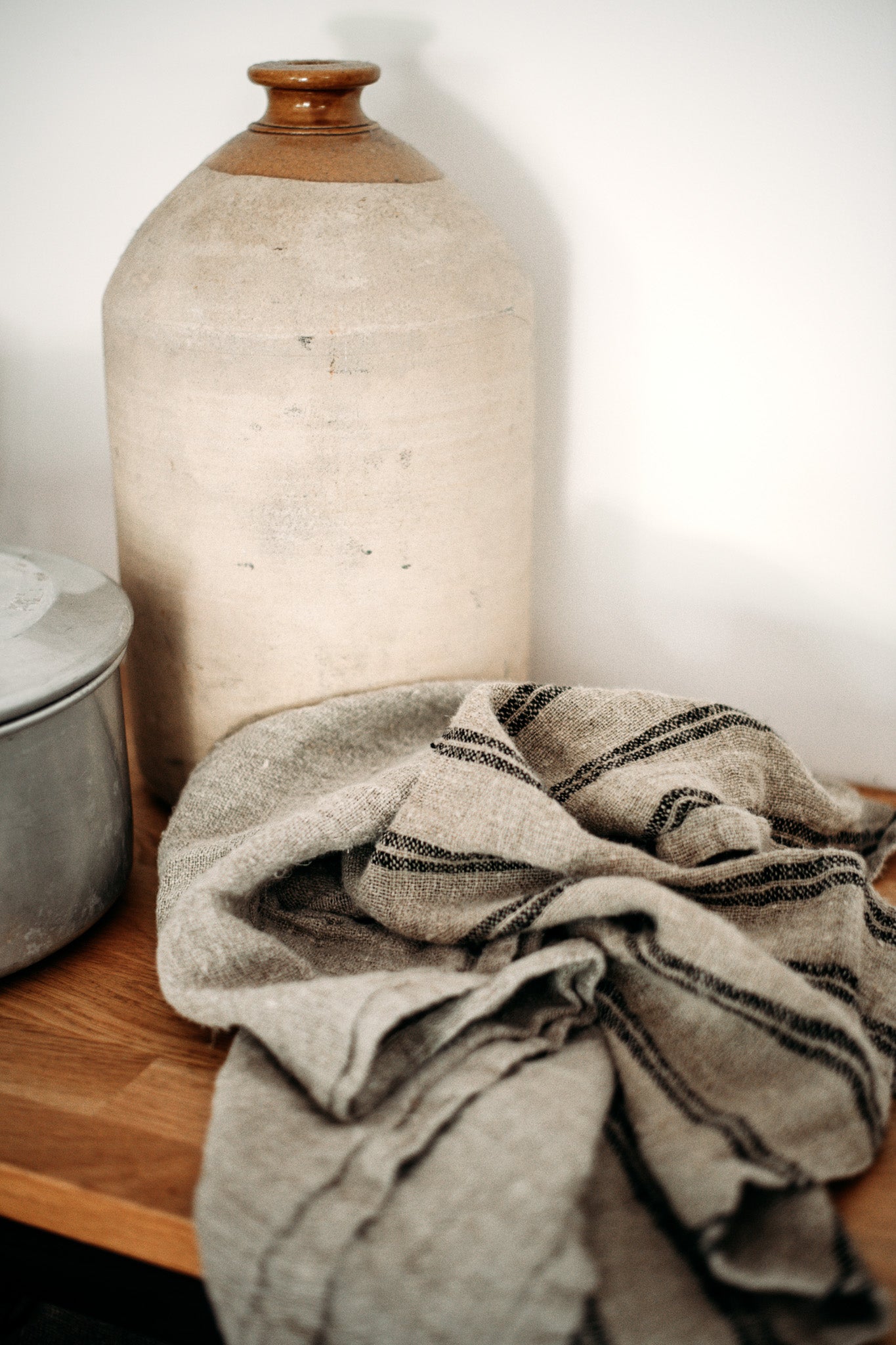 These rustic linen tea towels are an essential in our household. They're made from 100% pure linen with a thick, textured weave. The natural linen color adds a rustic charm, and since they're undyed, they maintain a classic look. Perfect for everyday use, these tea towels are a must-have for any kitchen.
