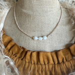 Featuring three delicate freshwater pearls spaced between soft pink stones and warm gold detail, this Koa Necklace by Indigo & Wolfe is a sweet statement on its own or layered.