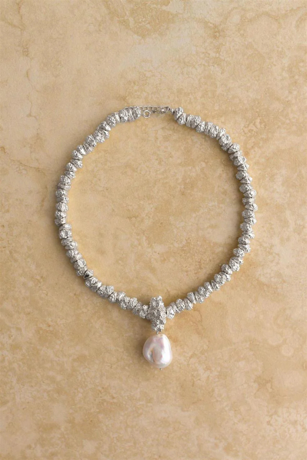 The Jewel Necklace in silver is strung with textured vermeil beads and finished with a bold baroque pearl. Lead, nickel & tarnish free, it's striking piece made to stand out and be treasured for years to come.