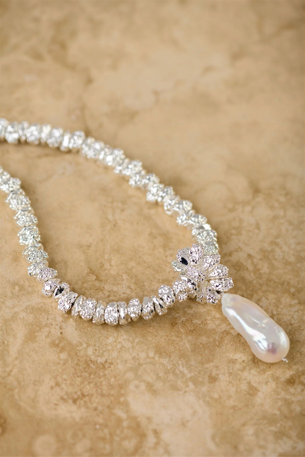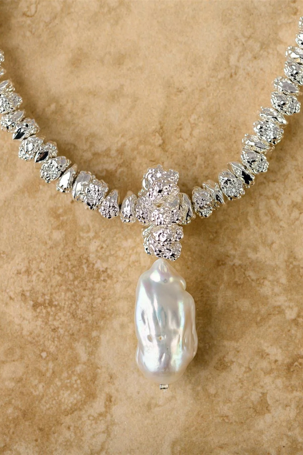 The Jewel Necklace in silver is strung with textured vermeil beads and finished with a bold baroque pearl. Lead, nickel & tarnish free, it's striking piece made to stand out and be treasured for years to come.