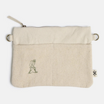 A handy little travel companion, the Wanderer Clutch is designed for life on the go. Made from upcycled truck canvas and durable duck cloth, it’s perfectly sized for your daily essentials or short getaways. The embroidered walking man adds a nod to quiet adventures, while the earthy tones keep things grounded and understated.