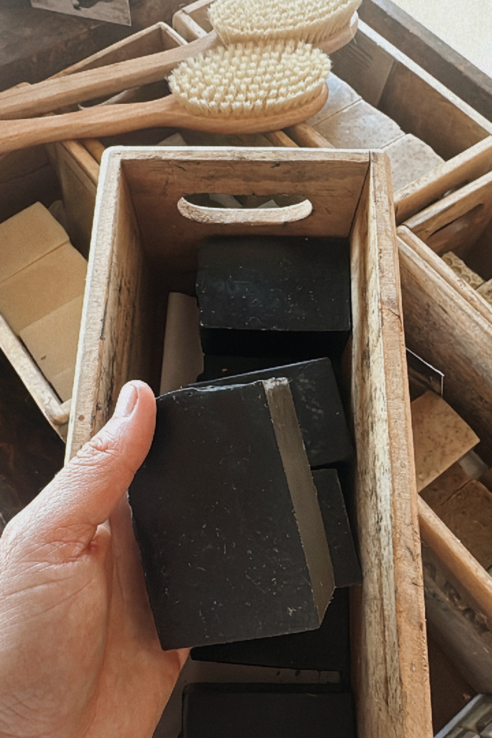 Give your skin a fresh start with the power of activated charcoal. This handmade soap draws out pollutants, toxins, and bacteria, while providing gentle exfoliation for all skin types — perfect for those with problem-prone skin or anyone looking to maintain a healthy glow. Scented with a refreshing blend of peppermint, rosemary, and tea tree essential oils, it delivers a crisp, herbaceous aroma with natural antiseptic benefits.