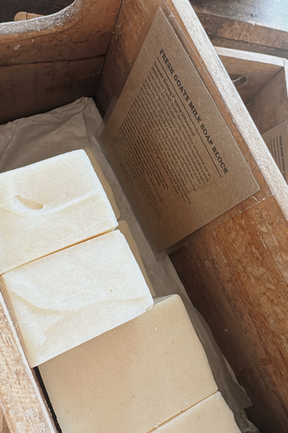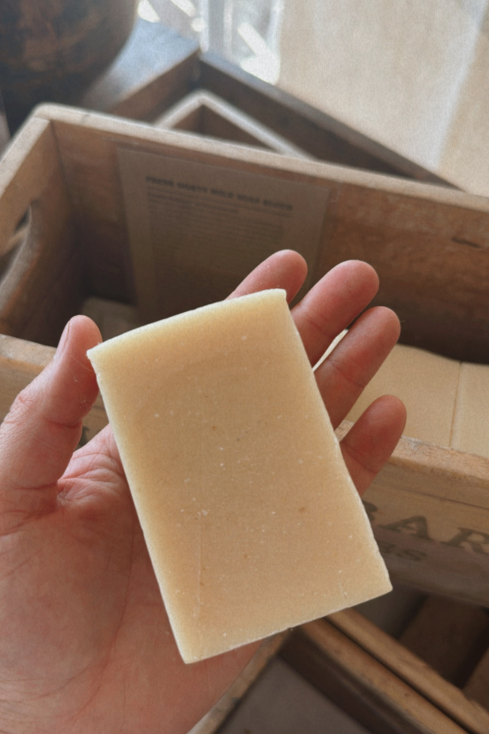 Made with fresh raw goat’s milk from the Hawkesbury countryside, this creamy, unscented soap is a gentle choice for sensitive skin. Colloidal oatmeal adds soft exfoliation, while natural lactic acid from the milk helps remove dead skin cells for a smoother, healthier complexion.