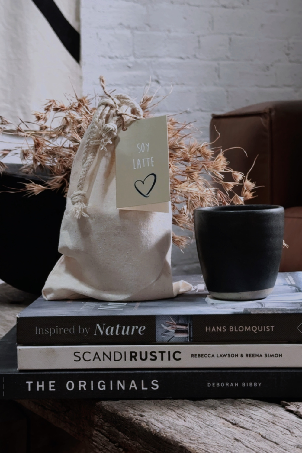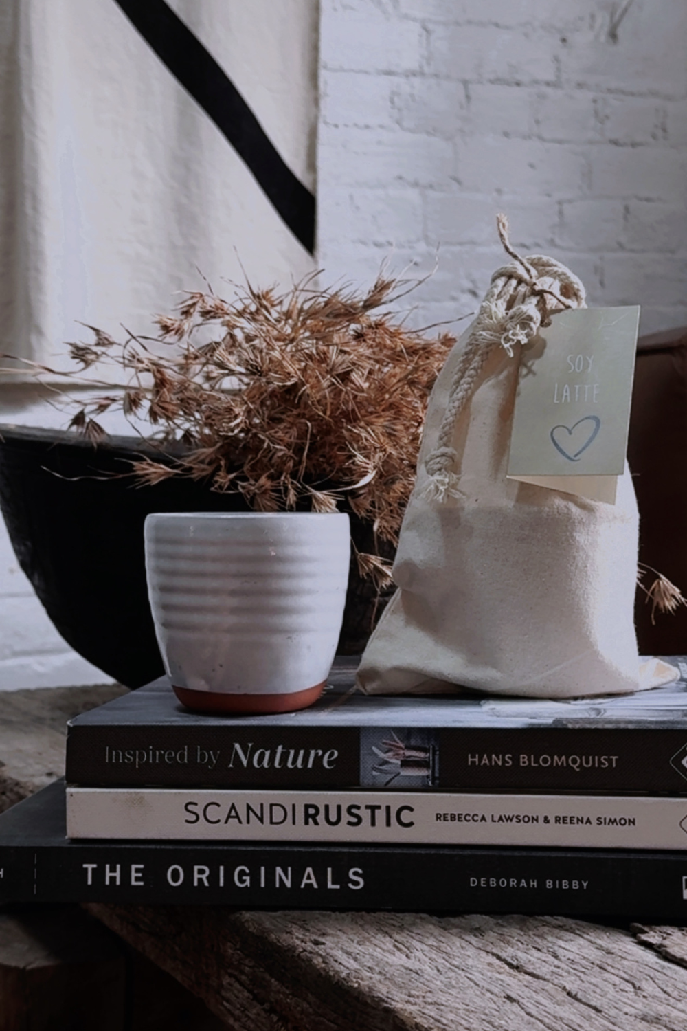 Handmade for Tomolly by Berrima Pottery in the Southern Highlands, each Latte Cup Candle is a little piece of magic. Poured with 100% soy wax and available in a range of beautiful scents, they come nestled in a linen bag and make the loveliest gift (or treat for yourself). Once the candle is finished, simply wash and reuse the cup for your morning coffee or tea, it’s the candle that keeps on giving.