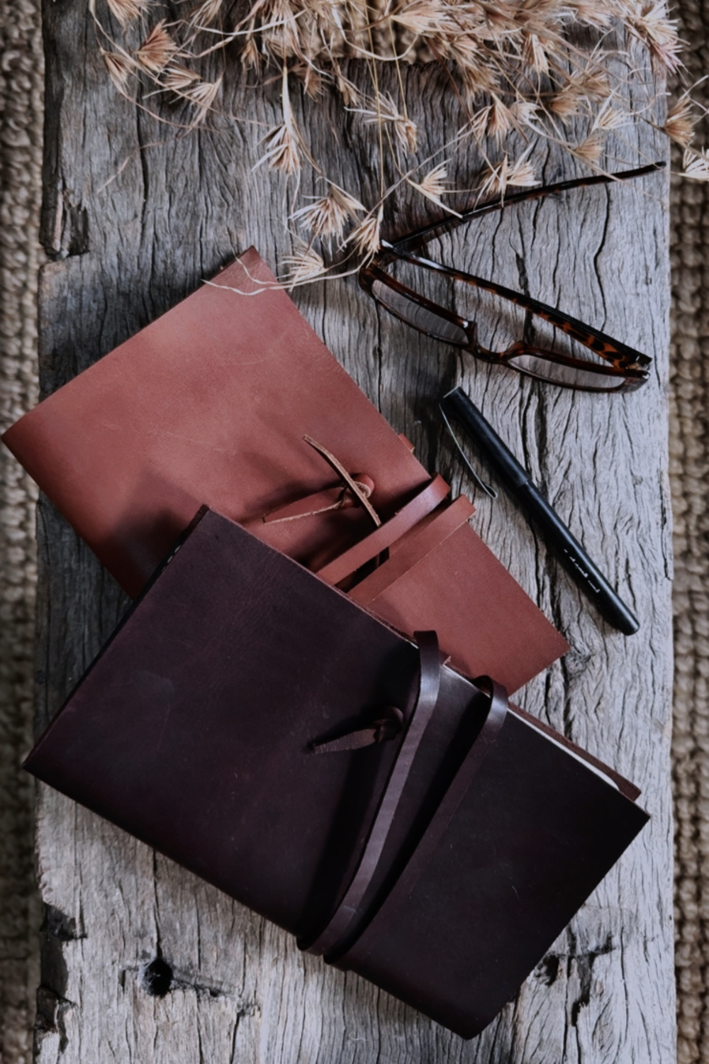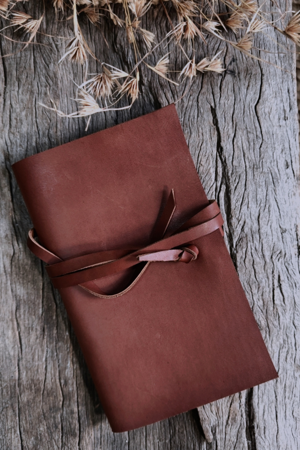 Beautifully handcrafted by Sarah Bracks exclusively for Tomolly, this leather journal is a piece to be kept and loved. Made from New Zealand bovine leather that softens gently with age, each one is saddle-stitched by hand using waxed polyester thread for strength and durability.