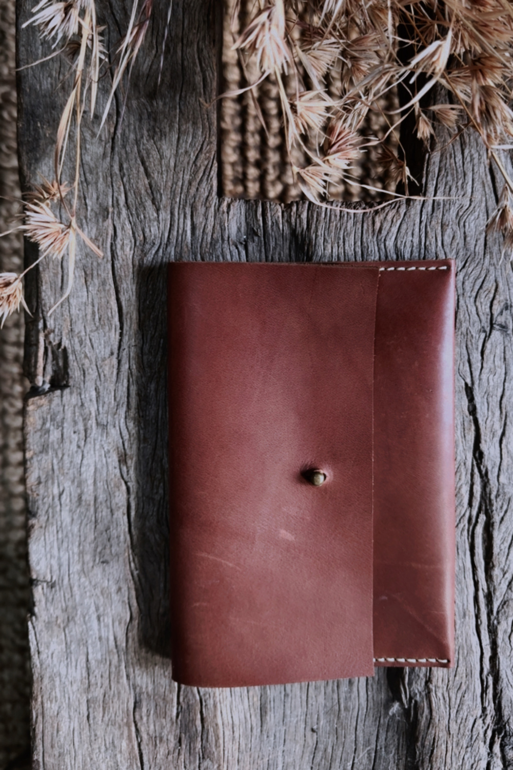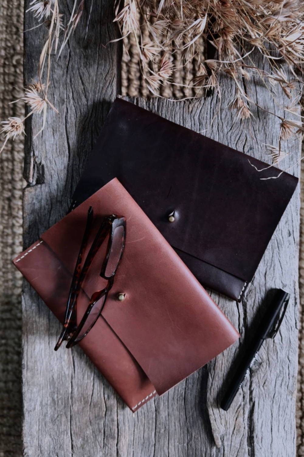 Handmade exclusively for Tomolly by the lovely Sarah Bracks, these leather pieces are crafted with care and intention. Sarah’s love of leatherwork began in childhood, watching her Pop work as a saddler in his shed. She still remembers the smell of leather and the way his hands moved with such skill and patience.