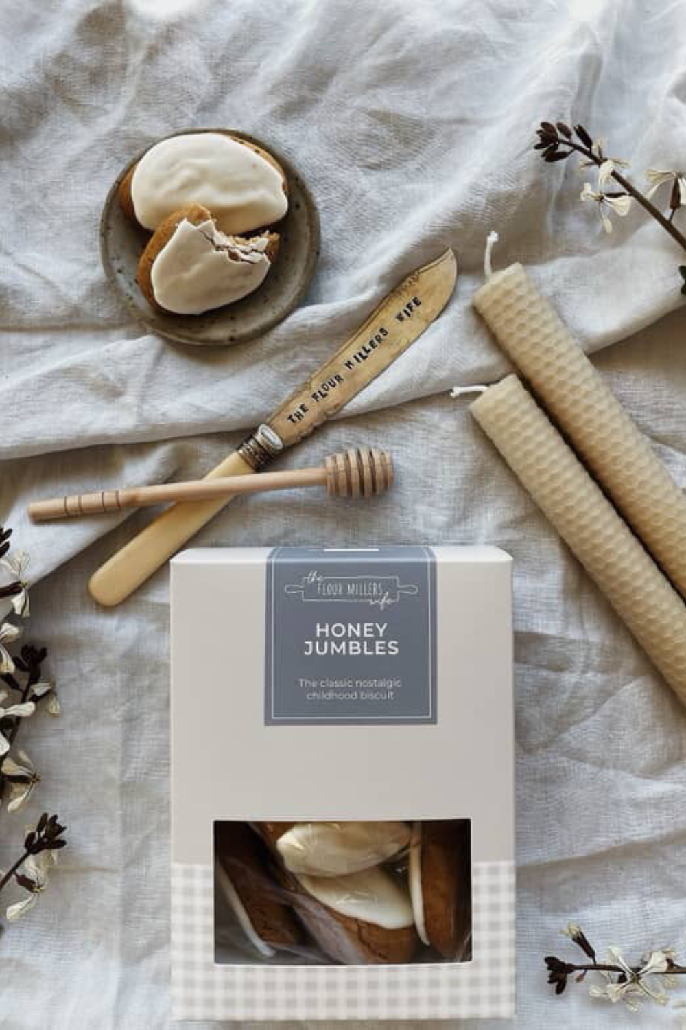 Handcrafted by Em in the country town of Manildra, The Flour Miller’s Wife biscuits are made with love and local pride. Em bakes each batch using ingredients from nearby producers — Little Big Dairy Co milk from Dubbo, Jones Bros Eggs, Australian butter, and honey from Whipple & Co in Molong. Her biscuits celebrate the region’s finest flavours and the joy of homemade baking, just like the ones you grew up with.