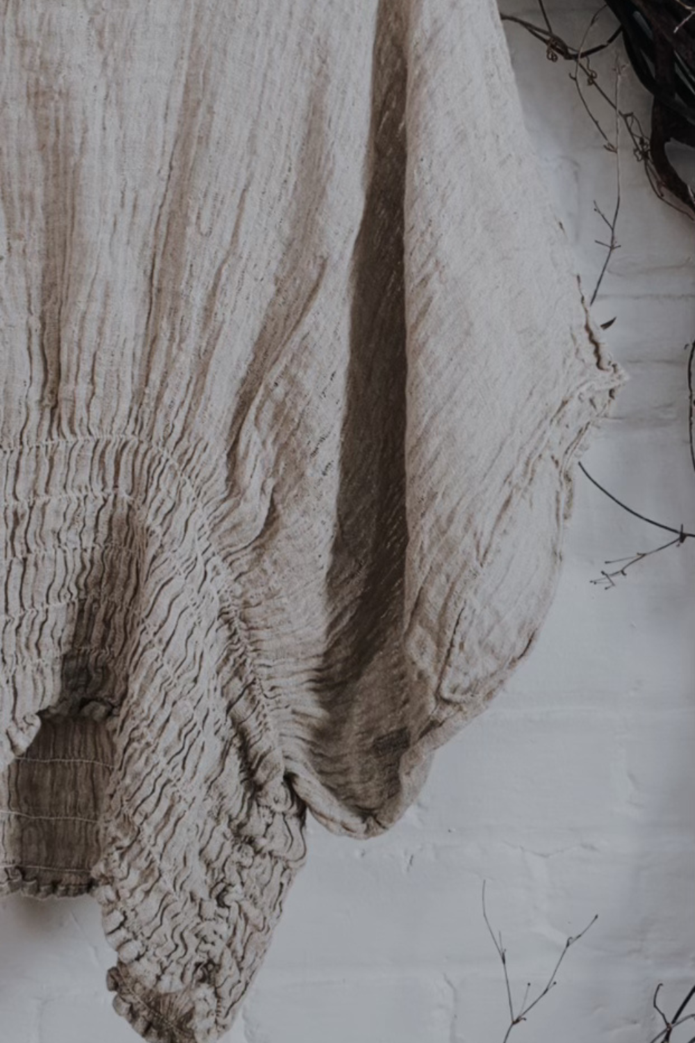 Hand wash or machine wash your linen garment on a gentle cycle (lukewarm water) using a mild detergent. You may use a laundry mesh bag for extra protection. Avoid hot water to safeguard against shrinkage and colour fading. Do not crowd the washing machine as this can twist or pull the linen fabric out of shape. Avoid mixing or washing with items that have hooks, zippers or Velcro as they can pull or snag the fabric.